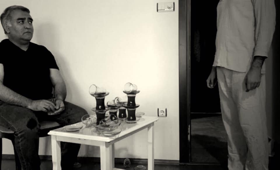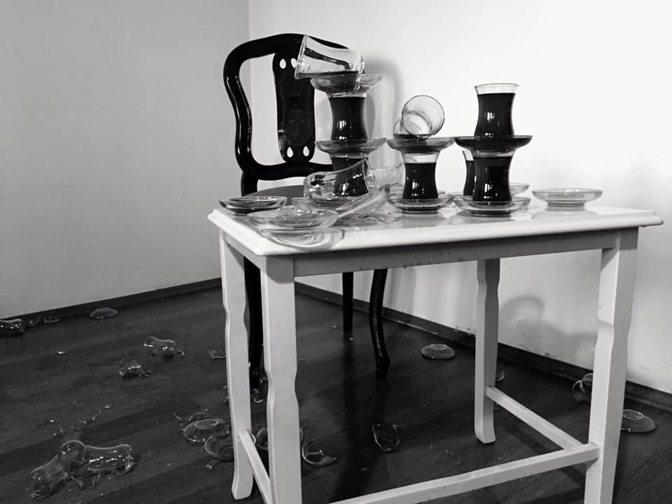 The patriarchal system which formed within our society and evolved in our home requires us to give a domestic service. The performance “Service” draws a dramatic portrait of the “groundless” / “fragile” pleasure behind the “Father” figure who has been presenting and adopting to male dominated power for generations. The collaborative performance between the artist and their father represents the action of serving a tea and meets the demand of the male figure. The repetitive process of the action culminates in a delicate sculpture that formed from the Turkish tea cups. The action continues till the gratified sculpture which draws the dictatorship of the patriarchy gets destroyed.