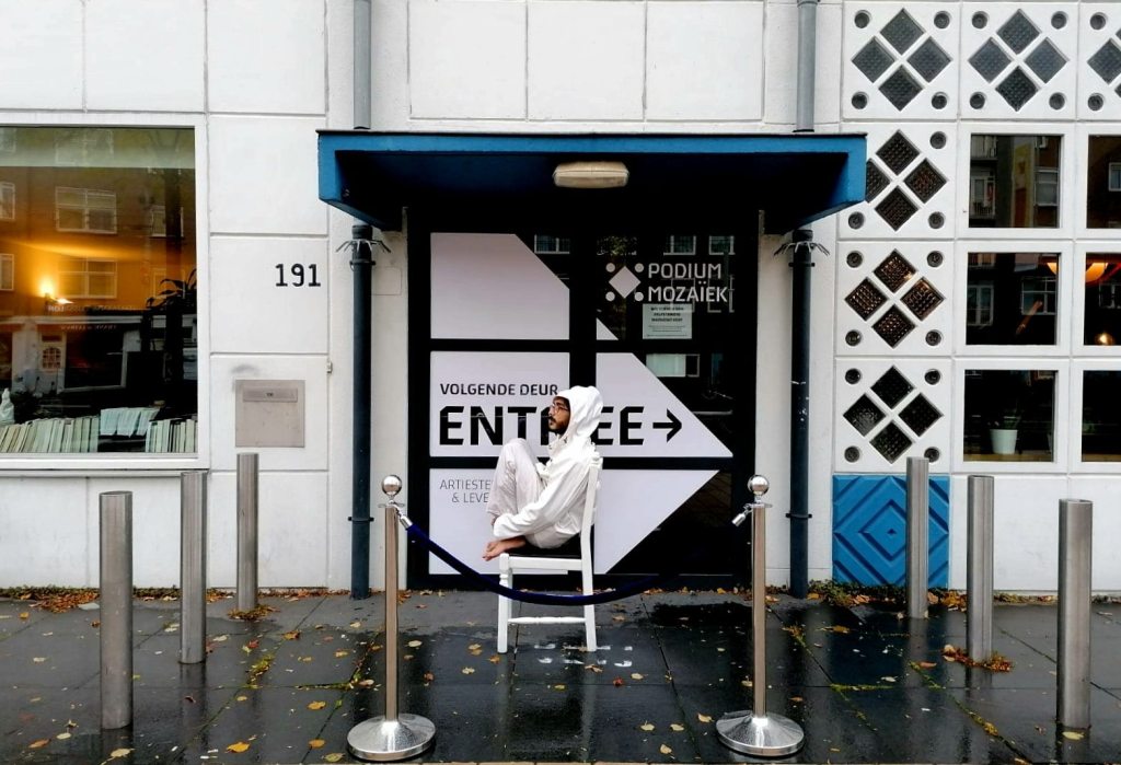 Addiction to the subtext and background of “durational” performances are discussed. Subtext becomes the object of desire for completing an incomplete performance job. In the course of the vivid process of living around a chair, the artist also aims to turn into a lonely figure that integrates with the texture of the street and the city.