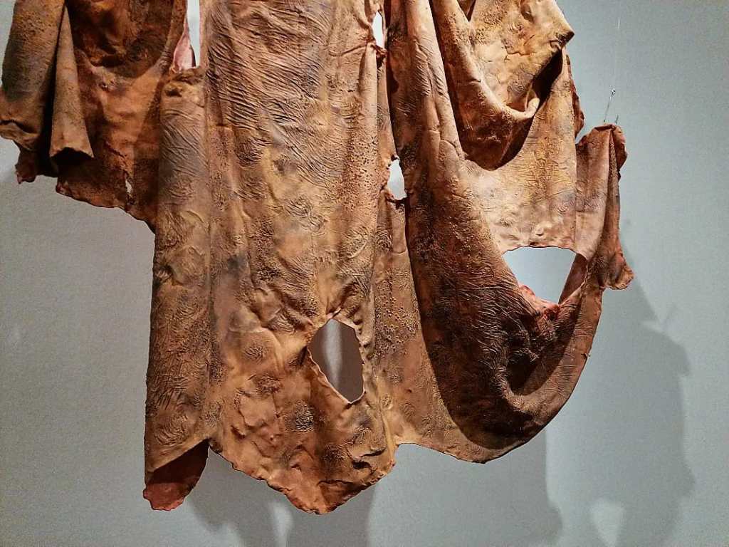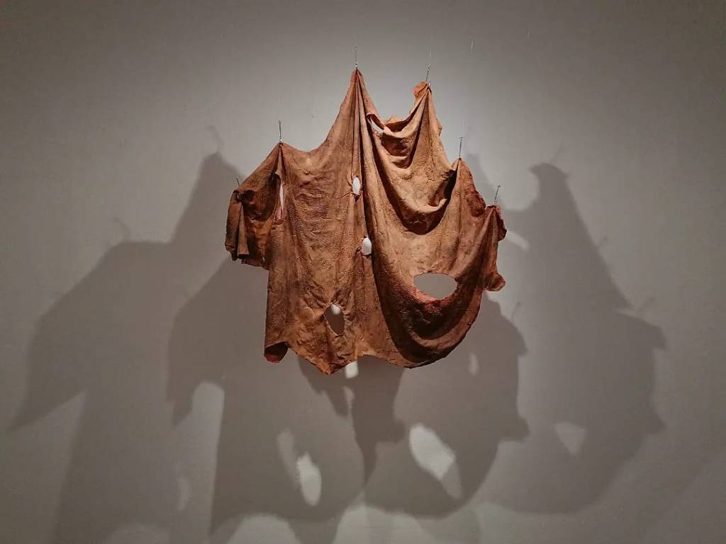 The Crucifixion is a universal Initiatic event that corresponds to a common symbolic meaning in collective memory. From an esoteric perspective, the crucifixion of Jesus represents salvation and his miraculous resurrection as part of a divine plan to save humanity. Crucifixion installation modernizes and reinterprets the traditional iconography of the crucifixion symbol with a hermeneutic approach. The skin, which had many holes, wounds, scars and defects, was presented by hanging it with hooks. Thus, the installation invites us to reconsider the body – together with all the traces on it – as a form of archive that reflects the history of the individual and the society.