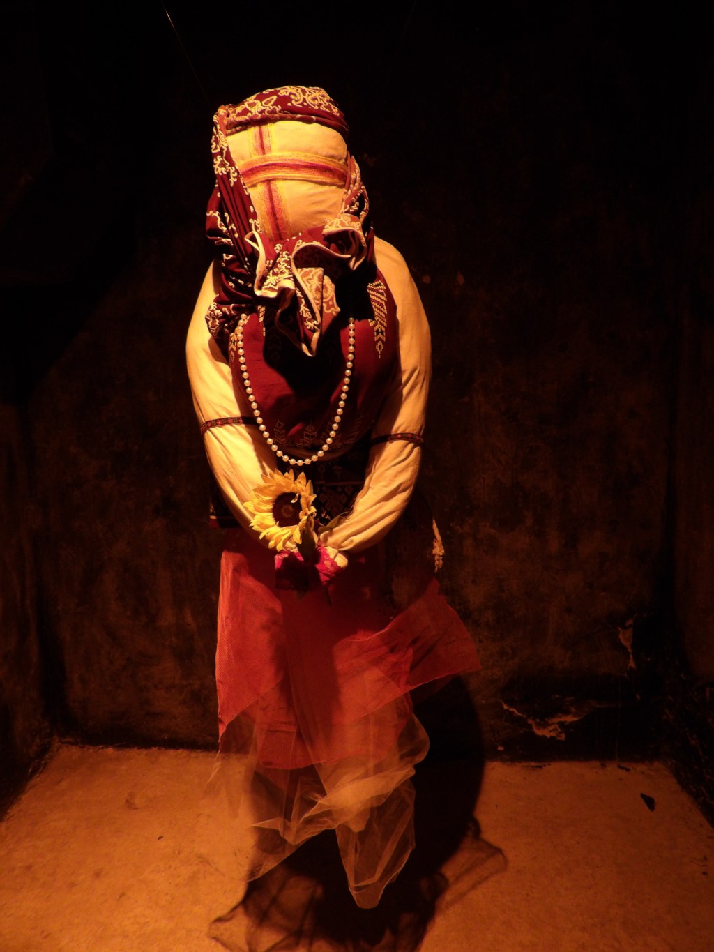 Motankas are ancient Ukrainian family talismans. They are the symbol of prosperity, goodness and hope. The first dolls appeared about 5,000 years ago and represented the unity of the family and deep connection between multiple generations. Mothankas are made with only good intentions and sincerity as it was believed that it has power and will act as a protector of a household and it’s inhabitants. The cross is a pagan symbol of the Sun and Moon. Dolls has been in the shape of a human figure, but witohut eyes. It is believed if it has eyes, it starts to serve for itself. Each mothanka has different purposes depending on their colours. Motankha in the exhibition was made in red, which symbolizes protection against evil spirits. In order to suit with the traditions, special herbs, coins and buckwheats has been put inside of the Mothanka. It has been made without using a needle or scissors.