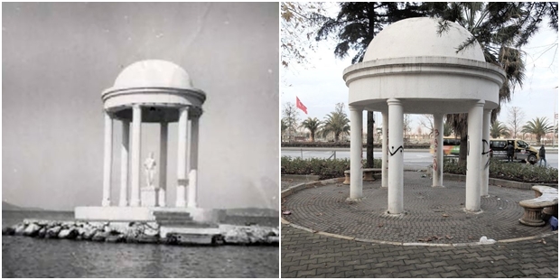 The Temple of Virgins was a piece of land located in the middle of the sea in Maltepe 75 years ago, which people could reach by swimming 50 meters in the sea. Although it’s image has remained as the logo of the municipality for years, it has been forgotten. Today the monument is 700 meters away from the sea shore. The current location of the temple has become the parking lot of a supermarket. The white statue in the middle of the temple was stolen and could not be found.
